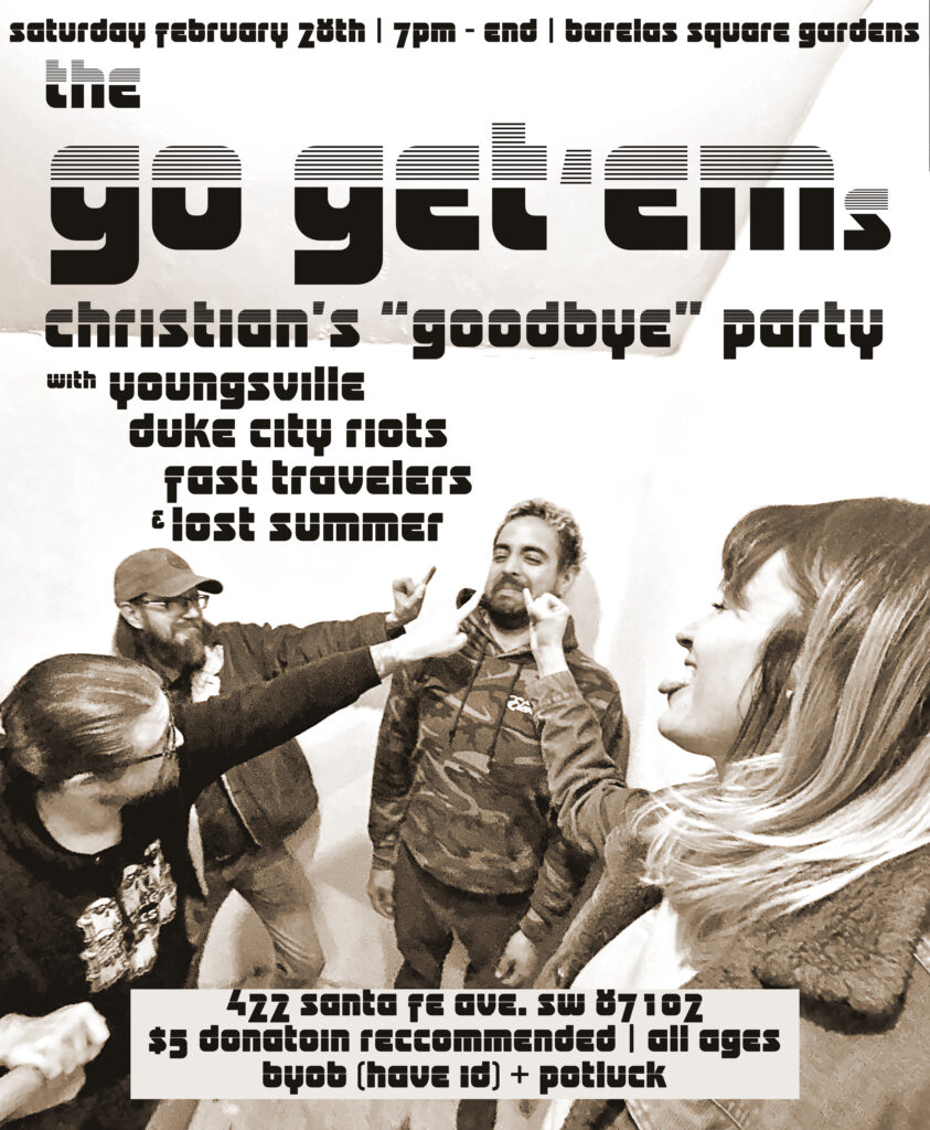 We’ll be live with The Go Get ‘Ems, Lost Summer and Fast Travelers. ALL AGES, $5 suggested donation. BYOB and BYO:Food. We’ll have chips, dips and hot dogs.